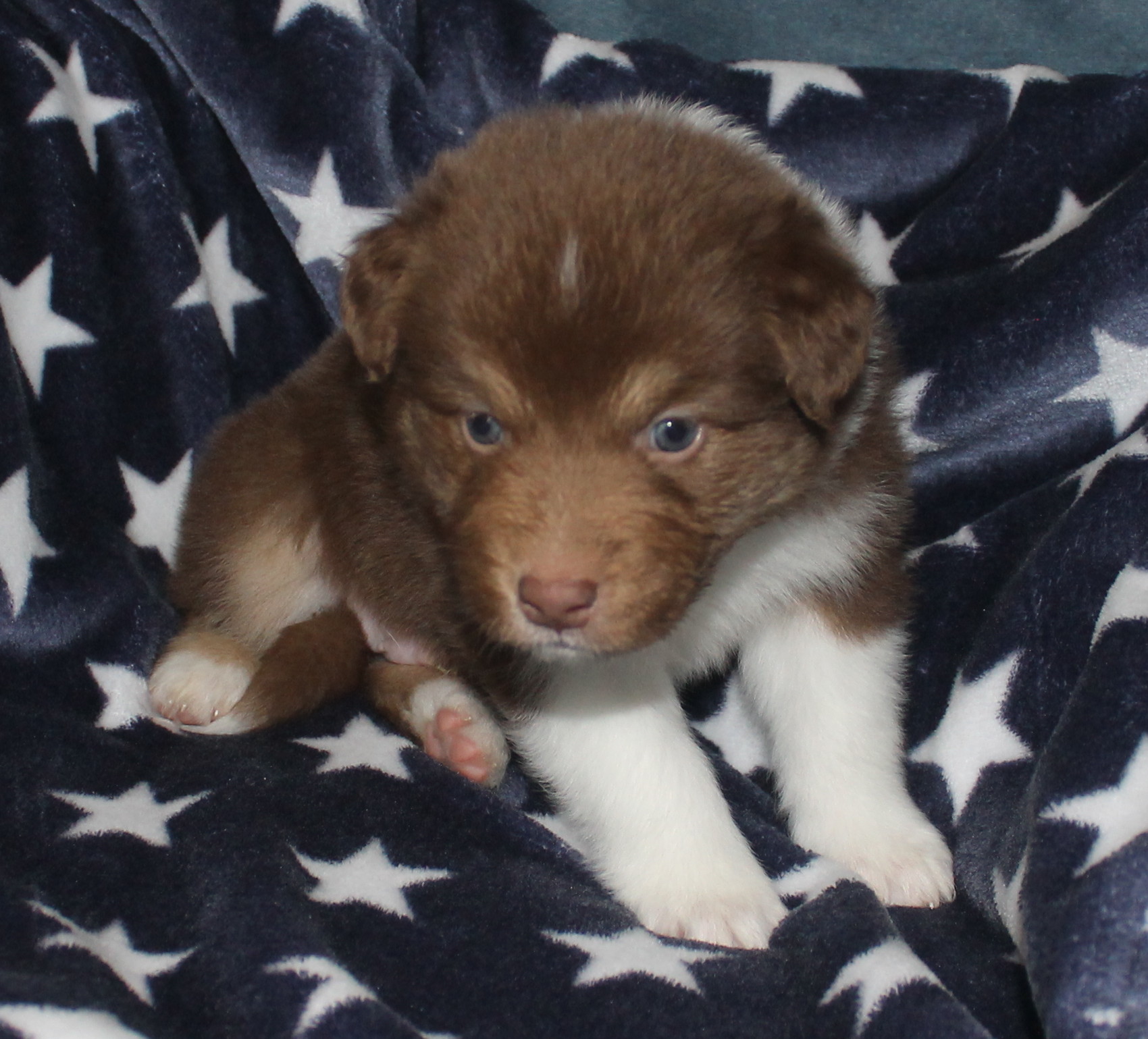 Jackpot ist zur Zeit einer der schwersten Welpen im Wurf