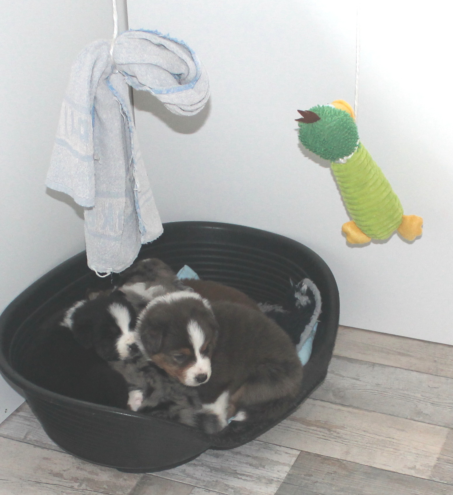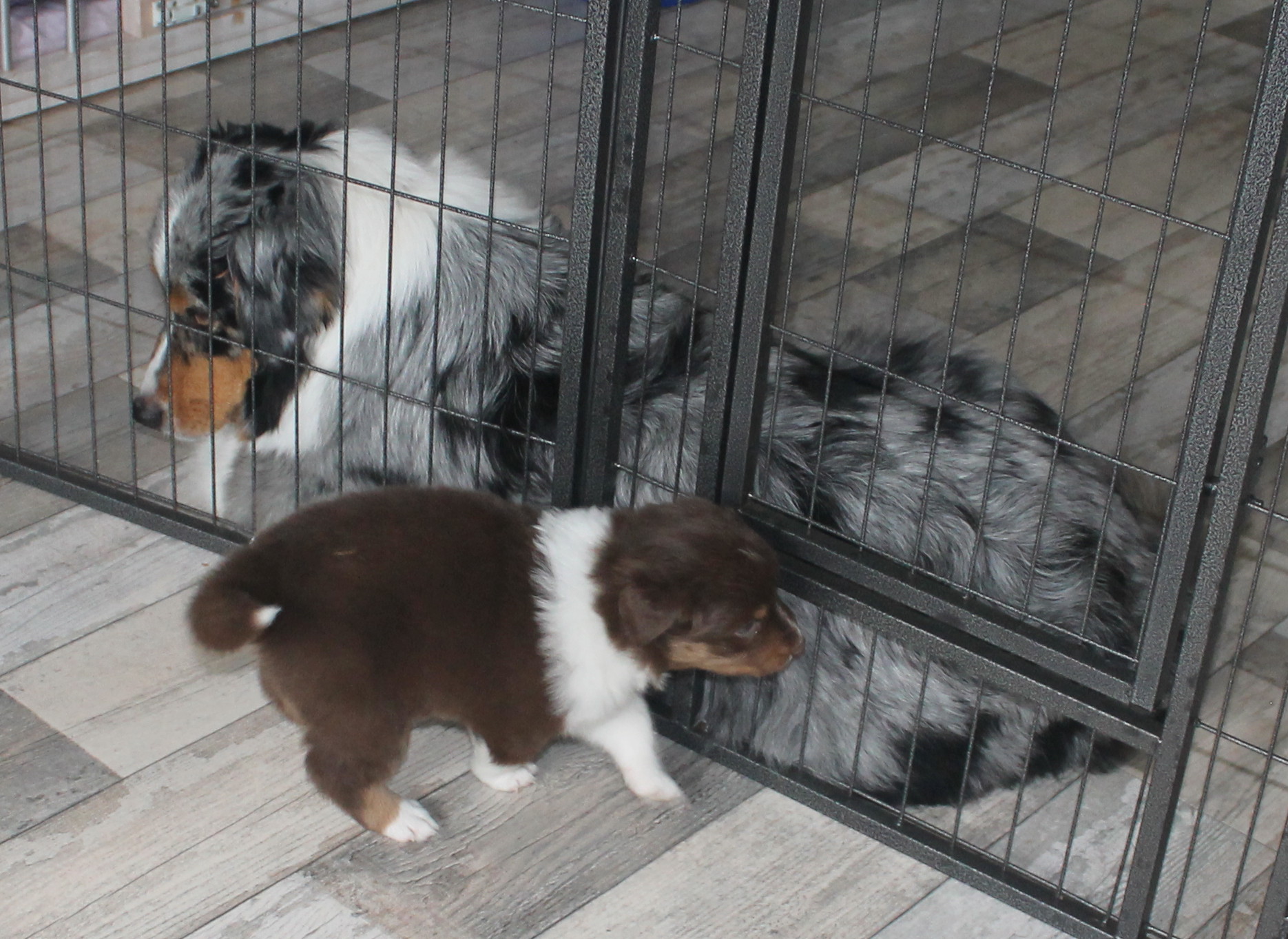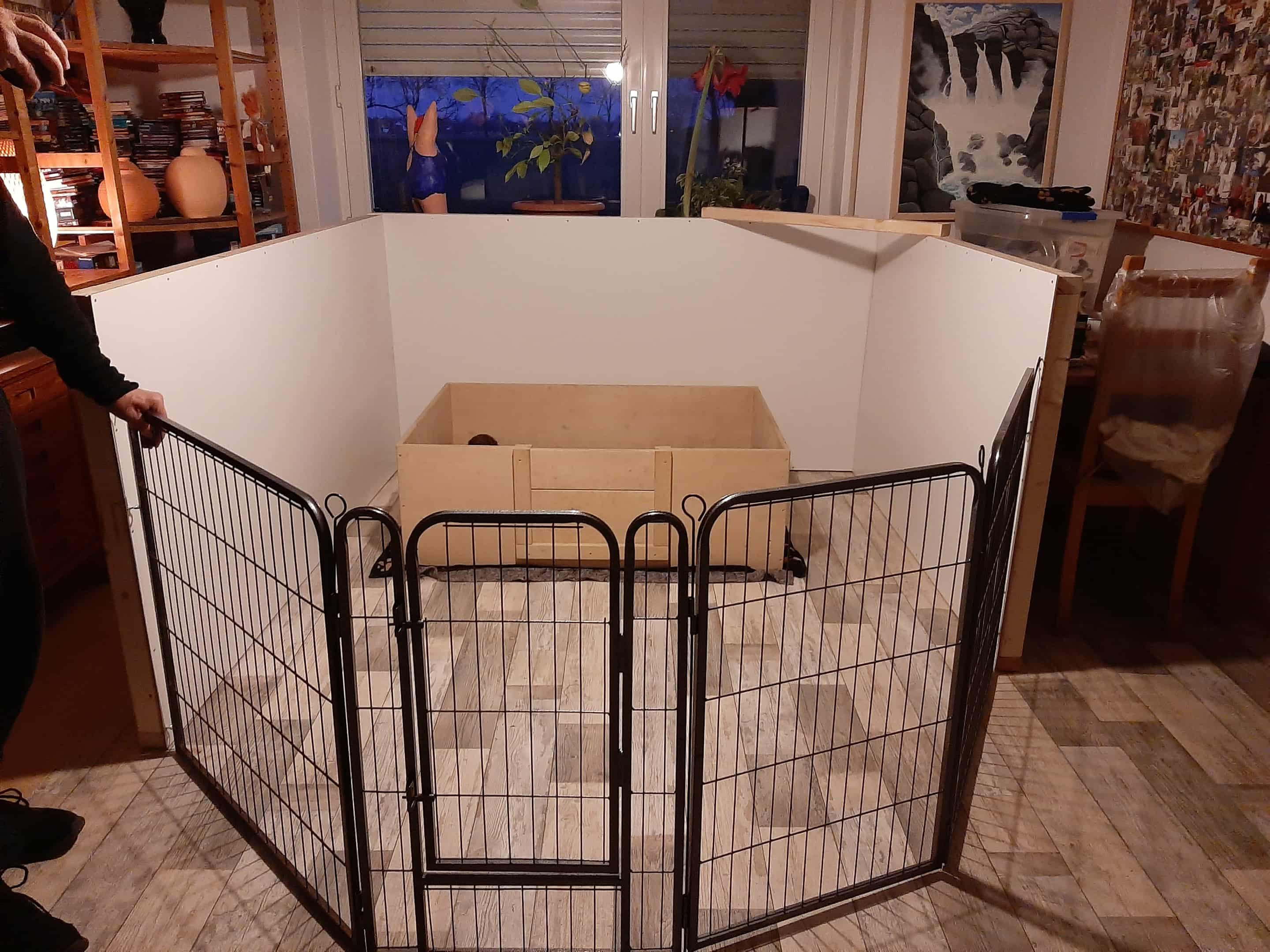 Welpenauslauf umgezogen. Hier noch mit der Wurfkiste, die aber