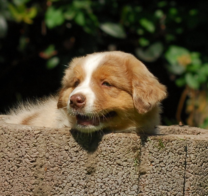 Hündin, red merle, Augen frei, MDR: N/N (+/+), HSF4: